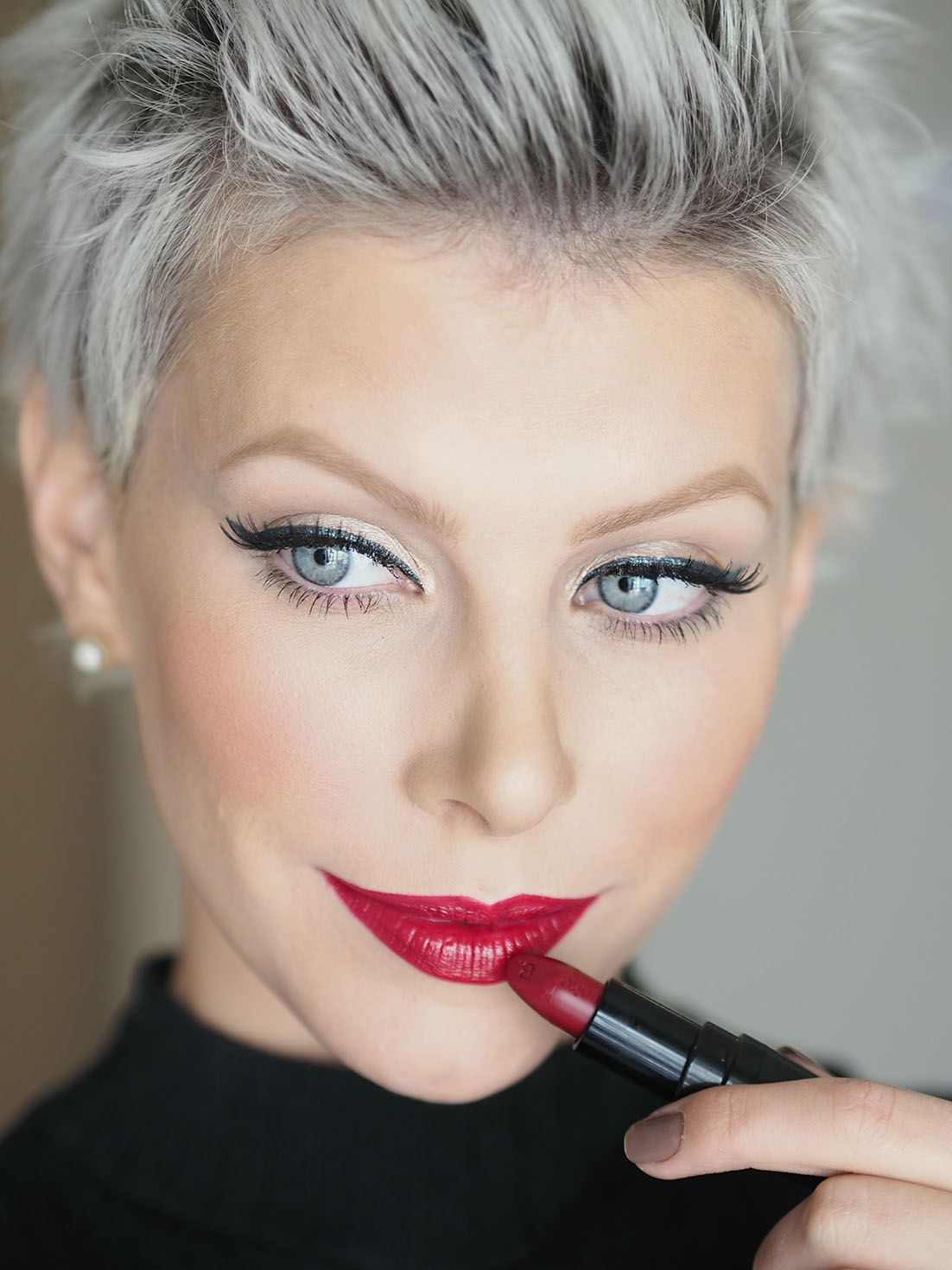4. Para finalizar o look, use um batom no tom vermelho mais fechado nos lábios.