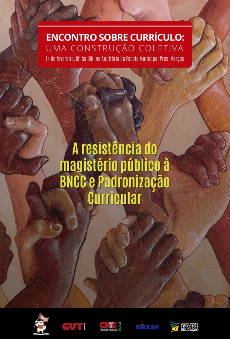 Com o tema “Uma construção coletiva: a resistência do magistério público à BNCC e padronização curricular” o Sintese realiza dia 1º de fevereiro, das 8h às 16h, no auditório Antônio Vieira (anexo a Escola Municipal Pres. Vargas) encontro sobre currículo.