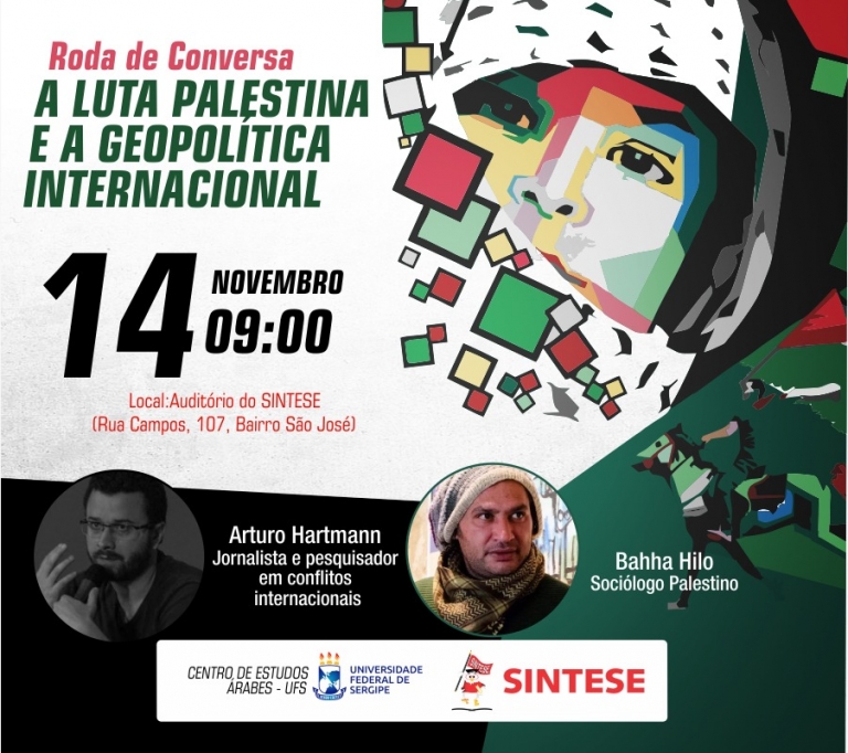Na próxima quinta, dia 14, às 9h, acontece no auditório do Sintese uma roda de conversa sobre a luta Palestina e a Geopolítica Internacional com o jornalista Arturo Hartman e o sociólogo Baha Hilo.