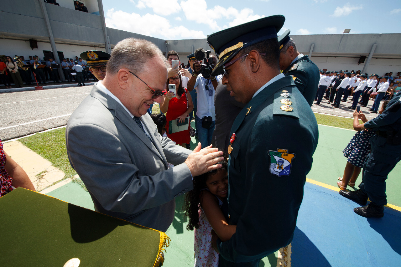 O coronel Neto foi um dos militares agraciados com a Medalha Alferes Tiradentes – a mais alta Comenda concedida pela Polícia Militar – e falou da alegria ao receber este reconhecimento após 26 anos de dedicação à PM. “Nem só de trabalho vive o homem, o homem também vive de reconhecimento tanto da parte administrativa, como da sociedade. Então, é um momento muito importante para mim e para os companheiros que aqui estão sendo agraciados hoje, tanto com promoções como com medalhas. É importante porque nos motiva ainda mais a servirmos à sociedade”, enfatizou o militar que atualmente é comandante do Policiamento Militar da Capital.
