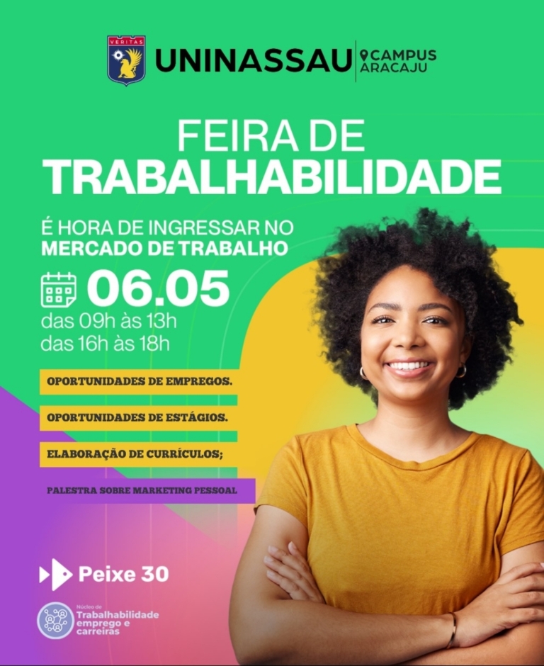 “Por meio de parcerias com empresas da região, a Feira de Trabalhabilidade visa conectar talentos ao mercado de trabalho. A programação inclui ofertas de emprego, oficinas de preparação para entrevistas, atualização de currículos, palestras sobre carreira e orientação profissional. Essa é uma ação concreta de promoção da empregabilidade, reafirmando o compromisso da Instituição com a formação profissional”, afirma o coordenador acadêmico da UNINASSAU Aracaju, Cícero Gonçalves.