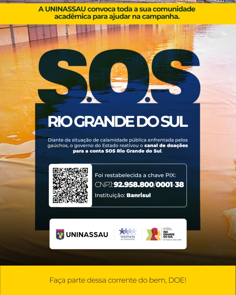 O Uninassau – Centro Universitário Maurício de Nassau Aracaju, por meio das Ligas Acadêmicas, arrecada água, materiais de higiene pessoal e ração animal para as vítimas do Rio Grande do Sul. Uma chave Pix também foi disponibilizada para quem preferir doar dinheiro.