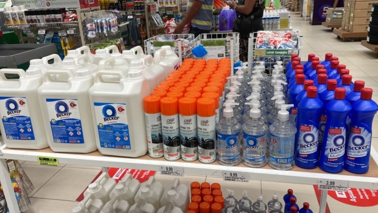 Para as compras de supermercado, a Ferreira Costa orienta utilizar uma solução com água sanitária a 10% (uma parte de água sanitária para 10 partes de água) e deixar frutas e verduras de molho por 10 minutos. Também é possível deixar de molho embalagens que não absorvem água e, depois, enxaguar. Outra opção é lavar as embalagens com esponja e detergente ou sabão. O que não for lavável, como pacotes de pão ou bolacha, a orientação é borrifar álcool líquido 70% e passar um pano seco e limpo na sequência.