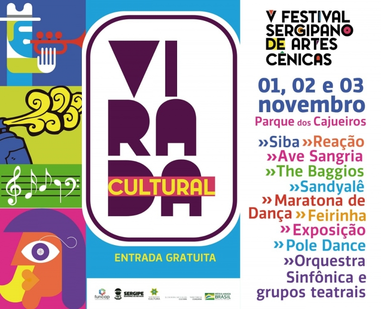 Nos próximos dias 1º, 2 e 3 de novembro será realizada em Aracaju, a Virada Cultural, evento que integra o V Festival Sergipano de Artes Cênicas e tem como objetivo celebrar o Dia Nacional da Cultura, que é celebrado anualmente no dia 5 de novembro.