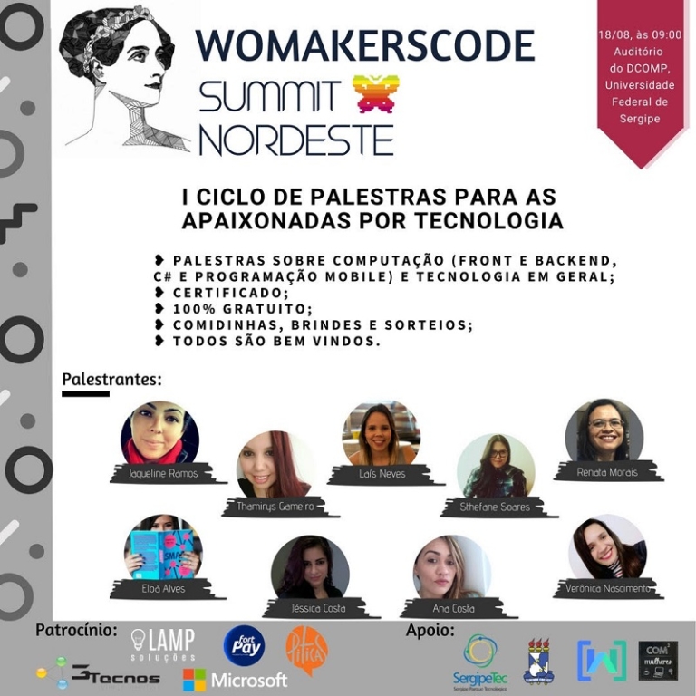 As inscrições são gratuitas e devem ser feitas em https://www.sympla.com.br/womakerscode-summit-nordeste__313176