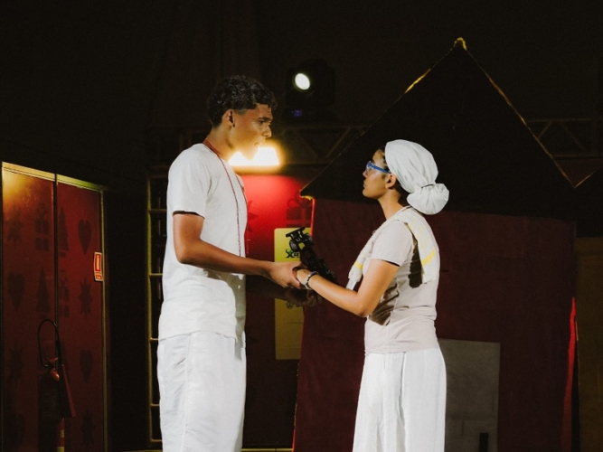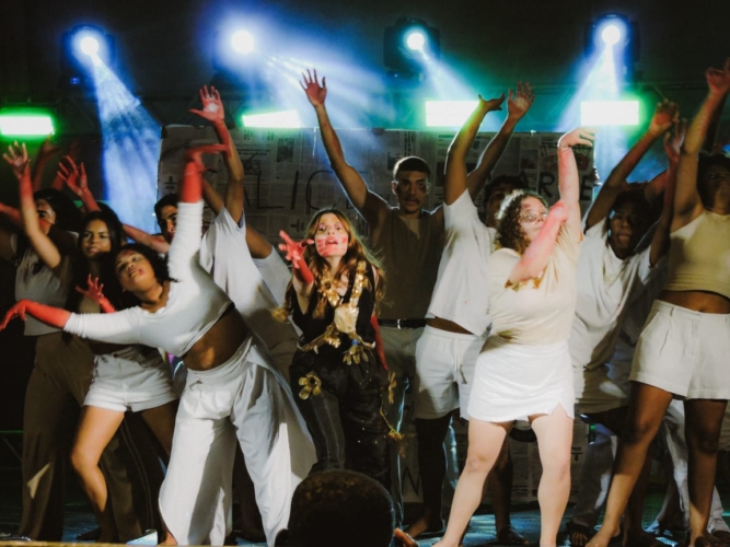 Neste ano, a Vitrine Literária se estruturou em torno do tema “Língua, Livros e Cultura: quem é o povo brasileiro nas páginas da Literatura?”, explorando elementos identitários e culturais do país. As performances partiram de obras-pilares como Incidente em Antares, Jubiabá, Macunaíma e A Hora da Estrela, resultando em peças de qualidade técnica e estética surpreendentes. As coreografias, encenações e pinturas demonstraram profundidade interpretativa e uma leitura crítica das questões sociais, históricas e simbólicas presentes nesses clássicos.